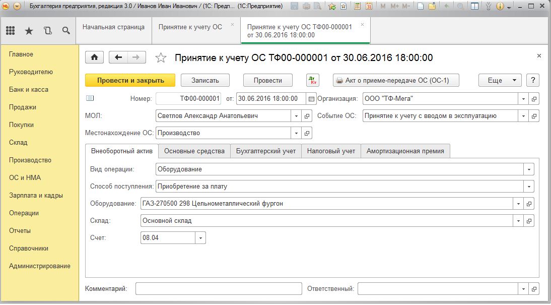 Поступление ОС в лизинг в 1С 8.3 пошаговая инструкция