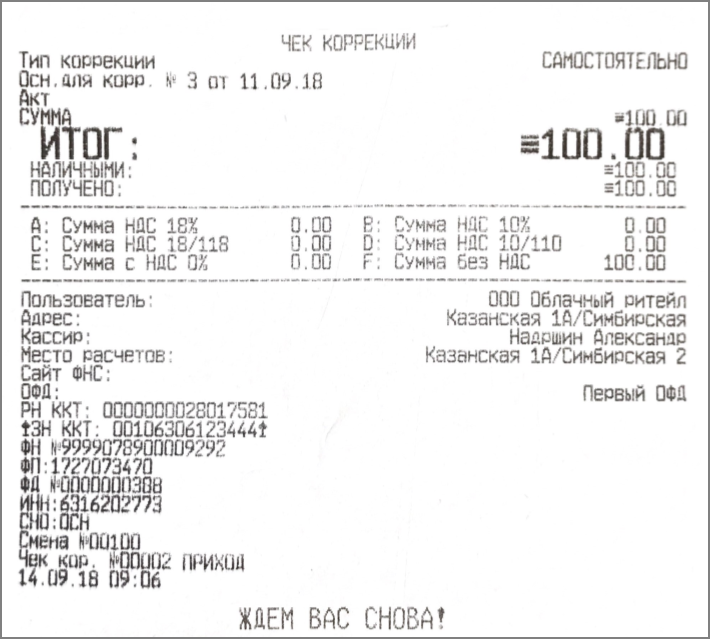 КАК ПРАВИЛЬНО ПРОБИТЬ ЧЕК КОРРЕКЦИИ