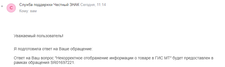 Честный знак. Ошибка при приёмке обуви. Обращение в техподдержку.