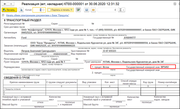 Товарно-транспортная накладная (ТТН) в 1С 8.3 Бухгалтерия