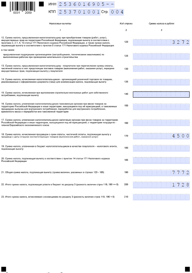 Обратите внимание на правильное указание всех необходимых реквизитов декларации по НДС.
