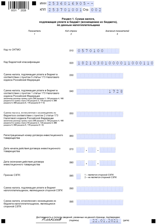 Не забудьте указать все необходимые реквизиты и суммы, включая сумму налога, выставленную к оплате.