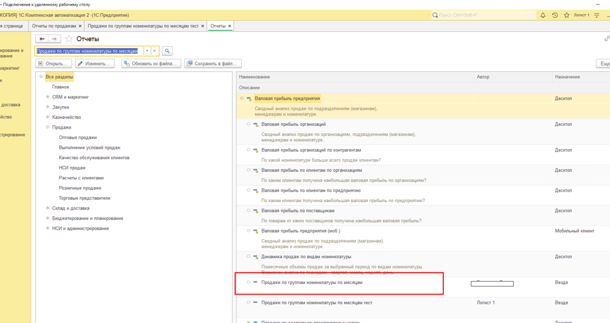 Отчеты анализа продаж в 1С Управление торговлей 10.3