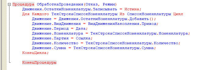 Создание документа ПриходнаяНакладная и РегистрНакопления ОстаткиТоваров