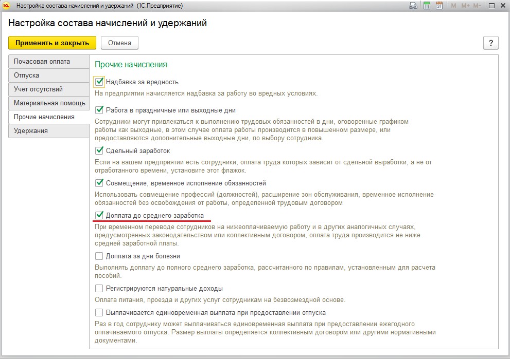 Доплата до среднего заработка в 1С:ЗУП ред.3