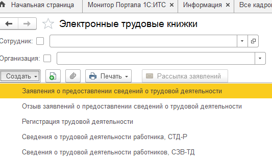 Подготовка сведений о трудовой деятельности по форме СТД-Р для сотрудника в 1С:ЗУП ред. 3