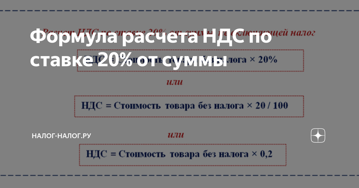Формула для расчета суммы с учетом НДС 20% в Excel