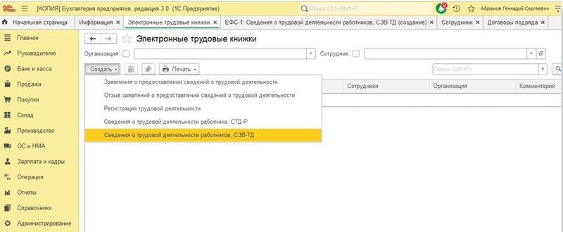 Корректировка и отмена сведений о трудовой деятельности СЗВ-ТД в 1С:ЗУП