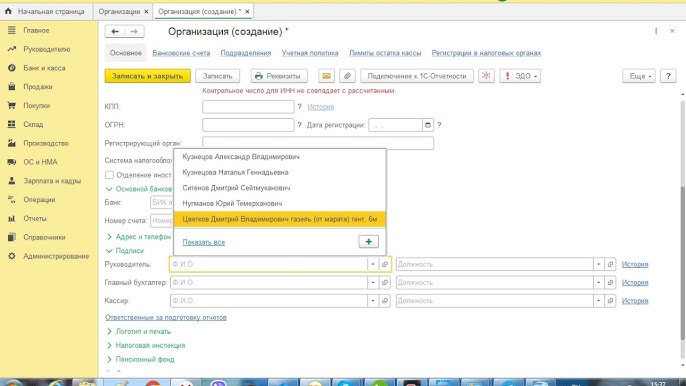 Как в 1С: Бухгалтерия создать организацию и заполнить реквизиты