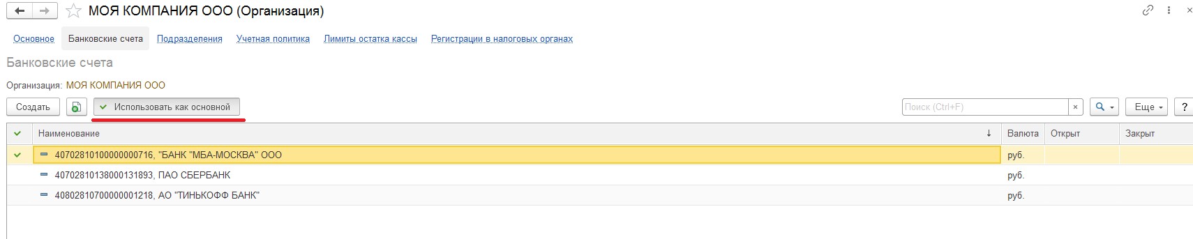Описание процесса нахождения реквизитов своей организации в программе 1С:Предприятие