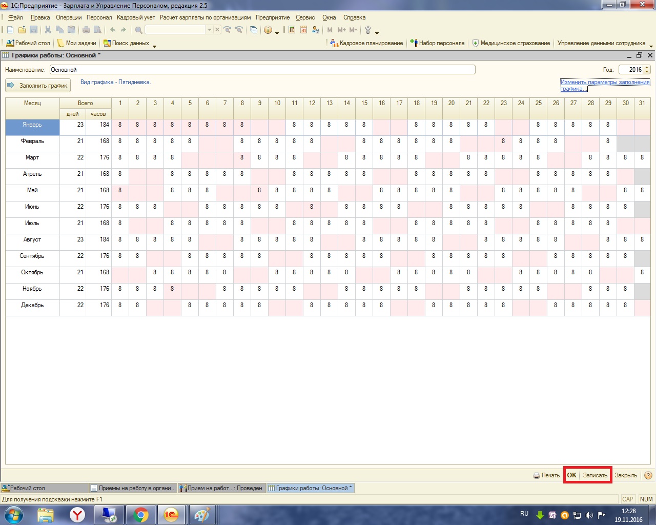 Заполнение табеля учета рабочего времени сотрудников 1С