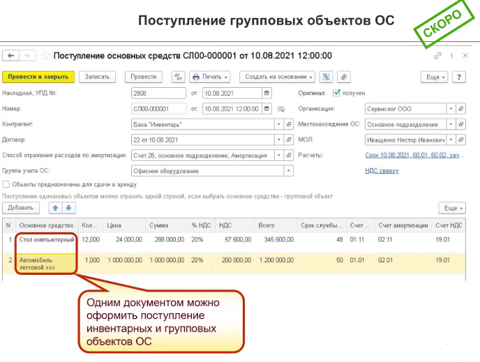Групповой учет основных средств в 1С Бухгалтерия 8