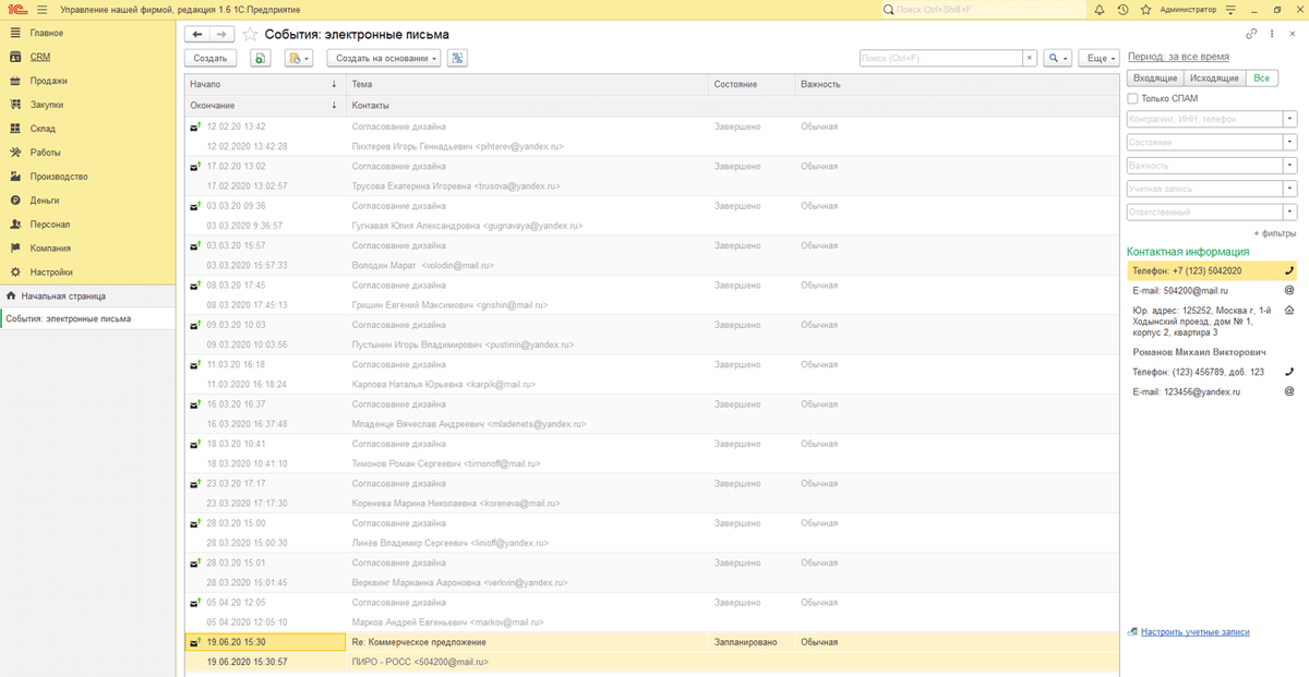 Новая версия 1С:УНФ 1.6.6: Интеграция с почтой, рабочие процессы, биллинг, серийные номера и ЕГАИС