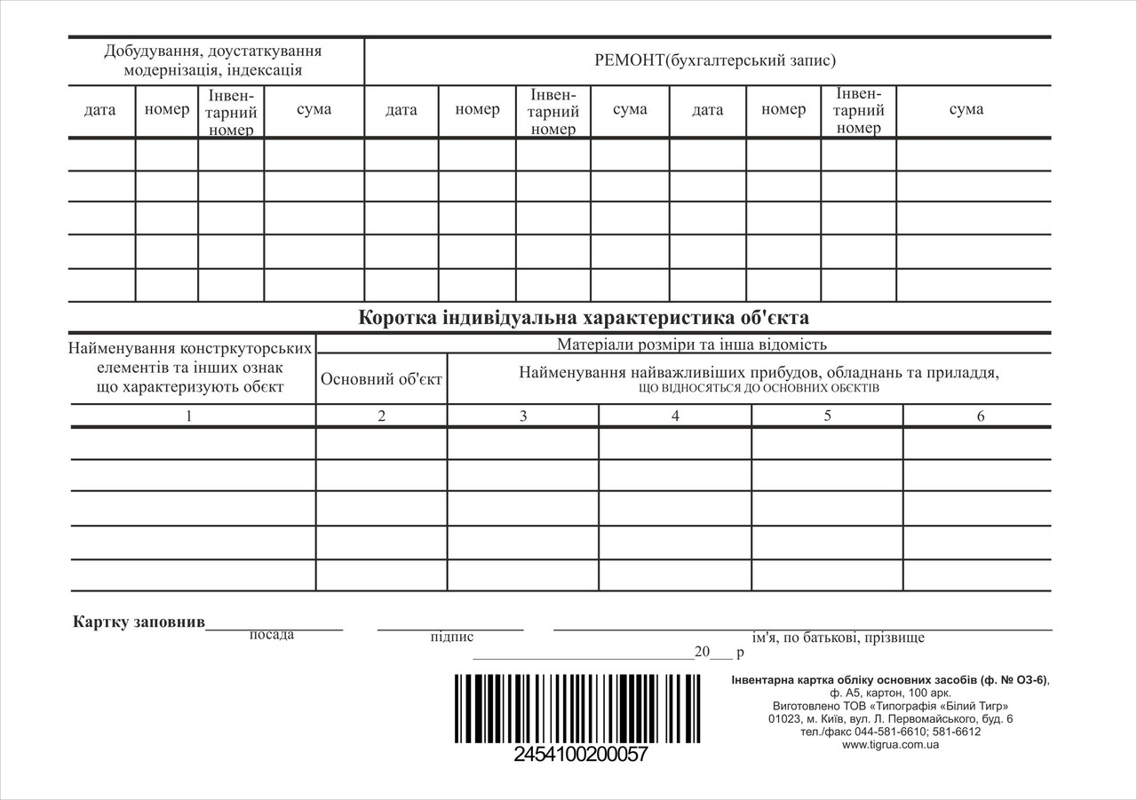 Какие данные отражаются в инвентарной карточке ОС-6 в 1С:Бухгалтерии 8