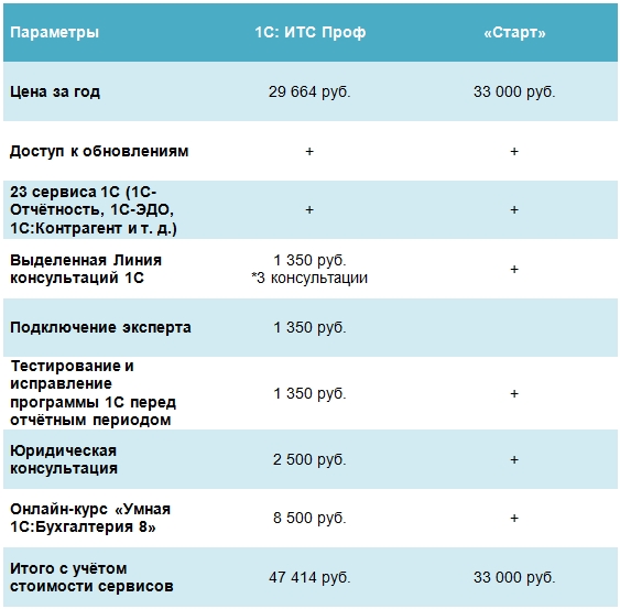 Тарифы ИТС - сравнение, составляющие ИТС, отличия ИТС ПРОФ от ТЕХНО, какой тариф выгодней и почему