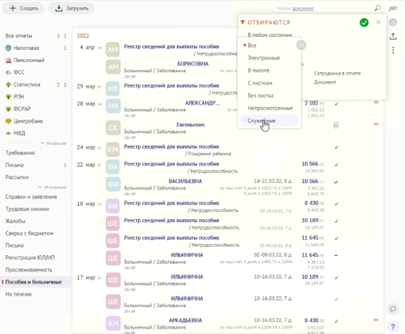 Извещение от ФСС не приходит в СБИС онлайн. Почему попадает в служебные? Пояснение алгоритма работы.