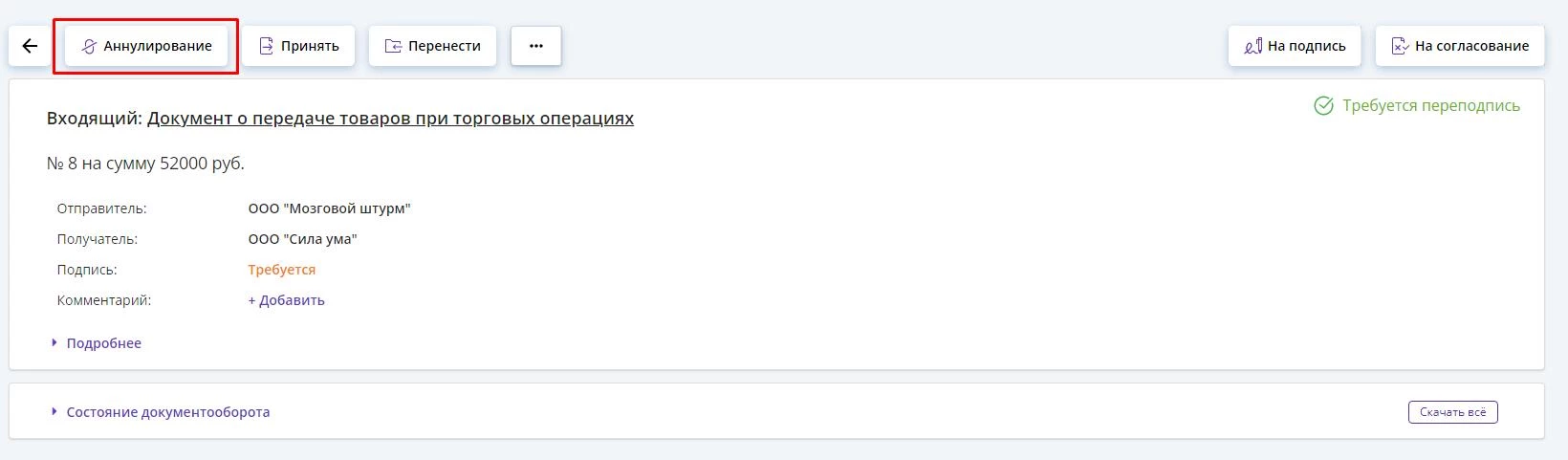 Аннулирование электронного документа при помощи сервиса 1С-ЭДО
