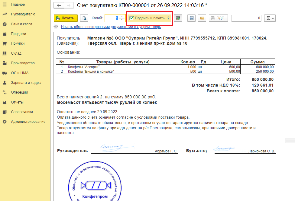 Предварительно проверьте правила вашей компании относительно печати и подписи документов, чтобы убедиться, что настройки соответствуют требованиям.