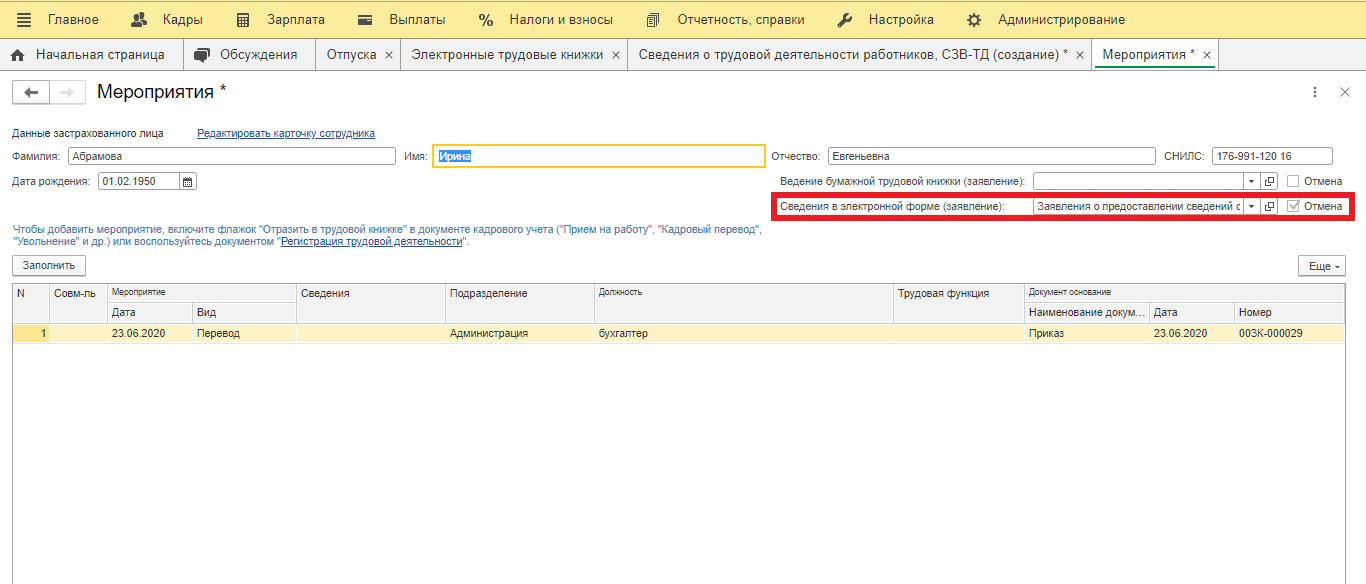 Электронные трудовые книжки — практика сдачи новой отчетности, оформление в 1С:ЗУП