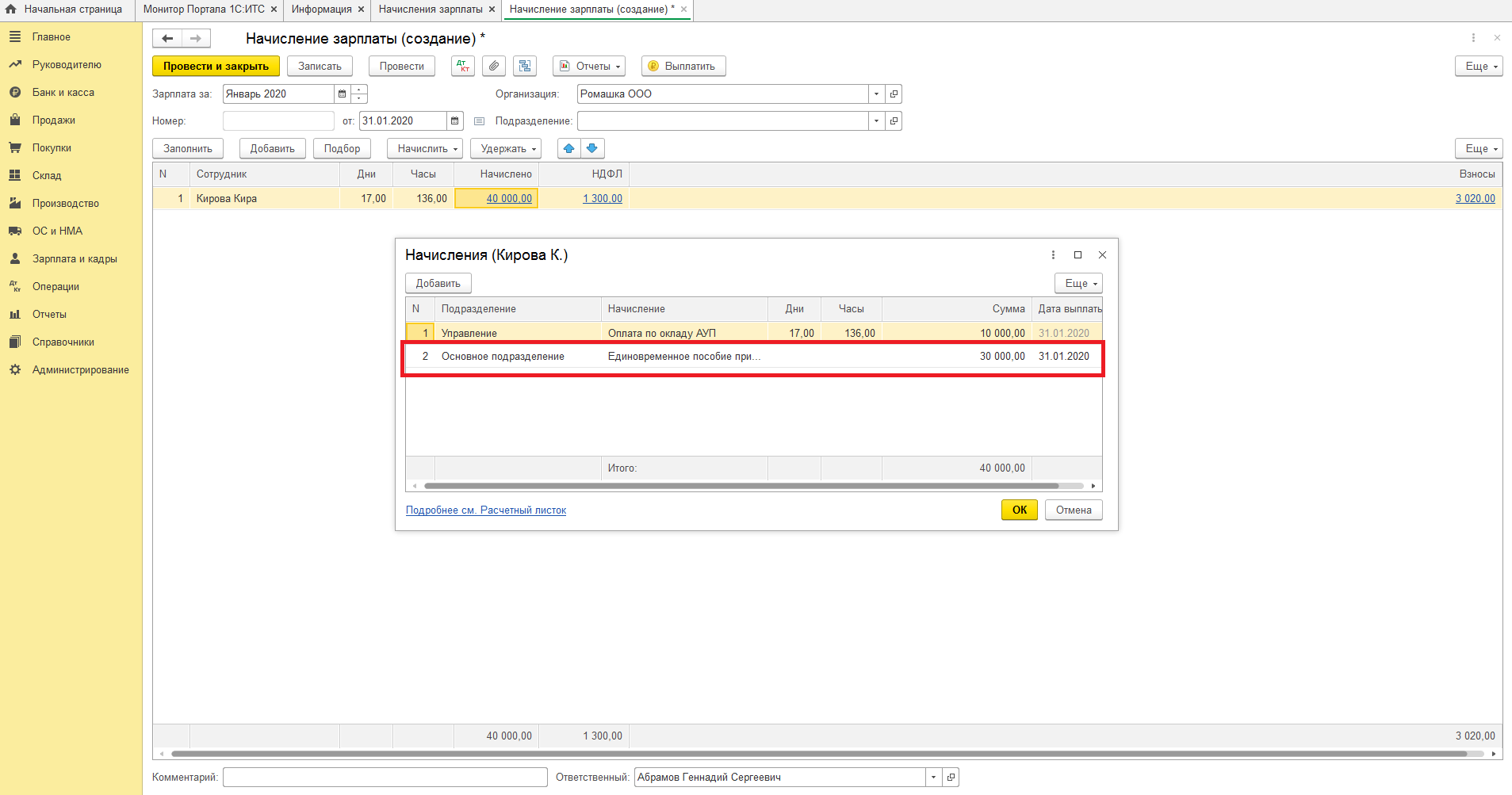 Как начислить единовременное пособие в 1С?