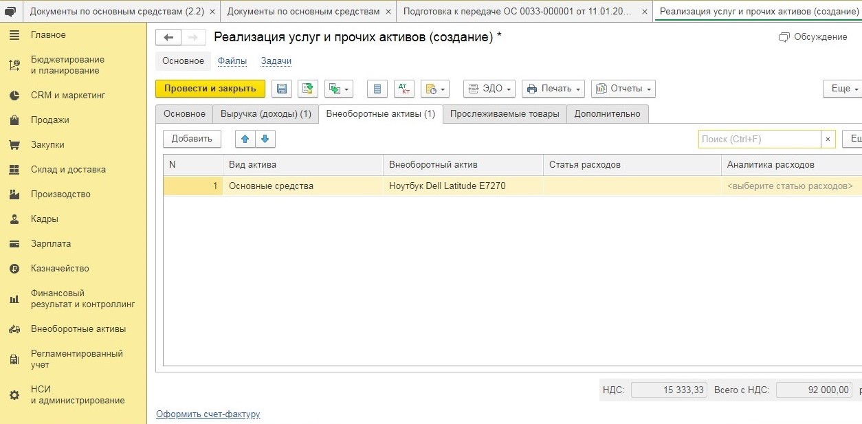 Продажа ОС в 1С 8.3 пошаговая инструкция
