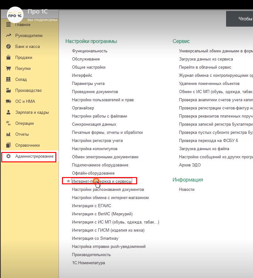 Подключить интернет-поддержку в конфигурациях 1С 8.3. 1С Бухгалтерия 3.0, Управление торговлей 11