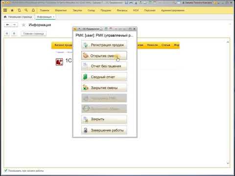 1С Розница -РМК открытие смены, продажа, закрытие смены