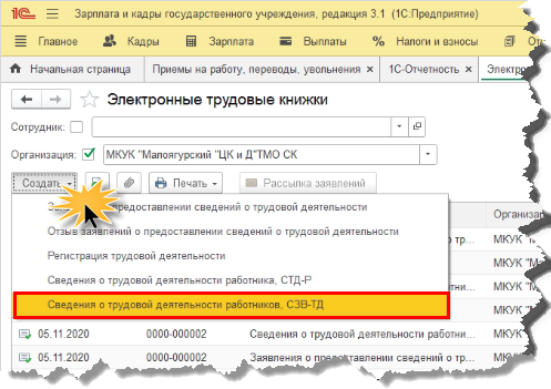 Как сделать отмену СЗВ-ТД в 1С