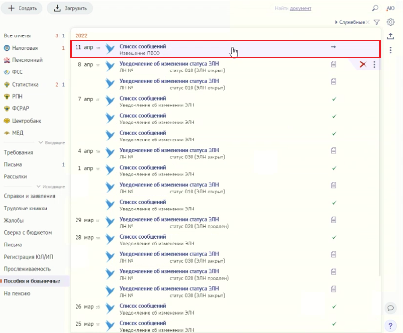 Извещение от ФСС не приходит в СБИС онлайн. Почему попадает в служебные? Пояснение алгоритма работы.
