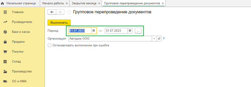 Перед началом перепроведения всех документов рекомендуется сделать резервную копию базы данных для предотвращения возможных проблем и потери важной информации