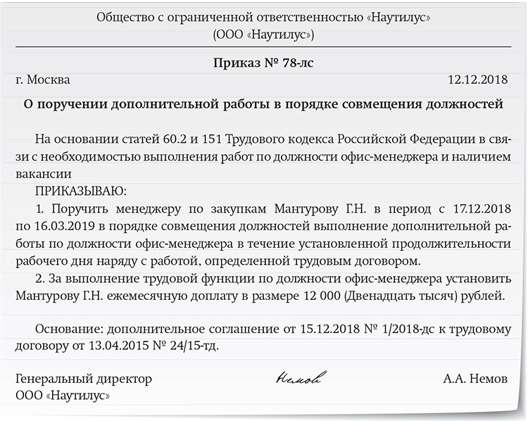 Приказа о совмещении должностей (Производственный учет)