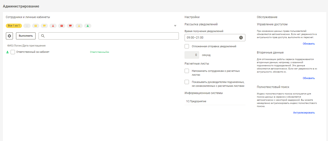 Как подключить сервис 1С Кабинет сотрудника