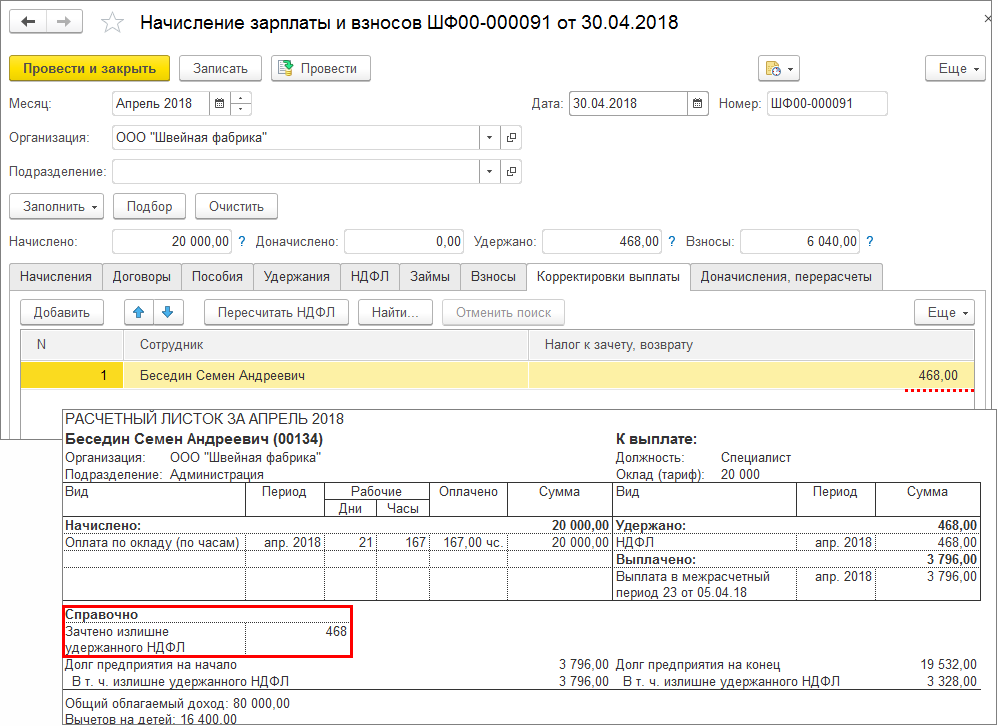 Как вернуть излишне удержанный НДФЛ сотруднику в программе 1С ЗУП