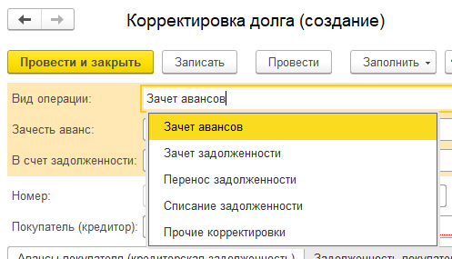 Корректировка долга в 1С 8.3: проведение взаимозачета