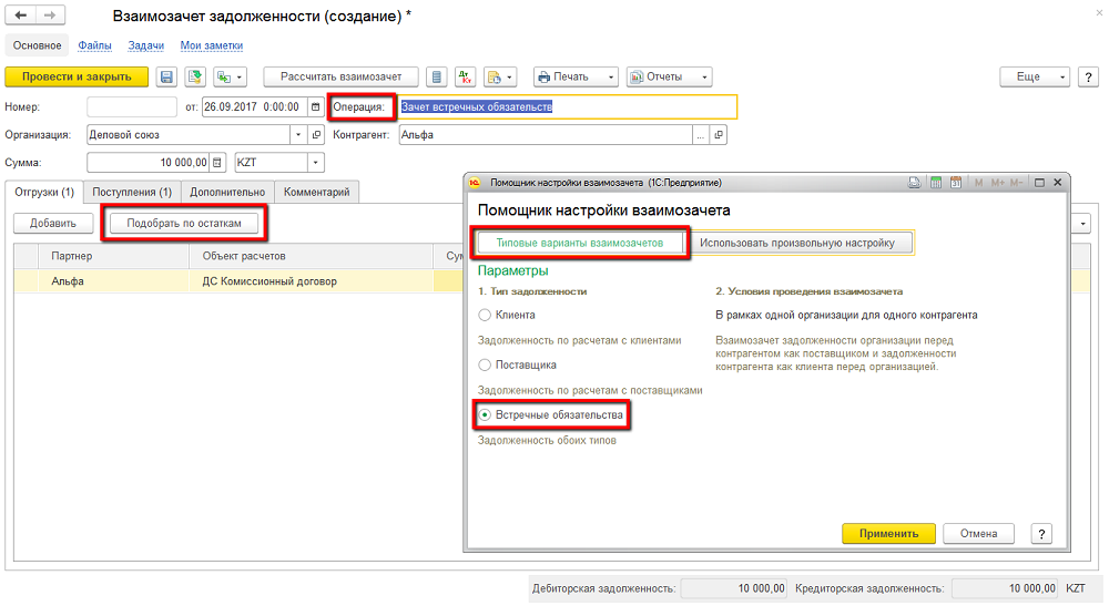 Корректировка долга в 1С 8.3: проведение взаимозачета