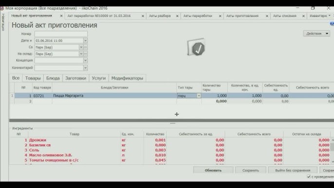 3.2 Создание блюд и заполнение технологических карт