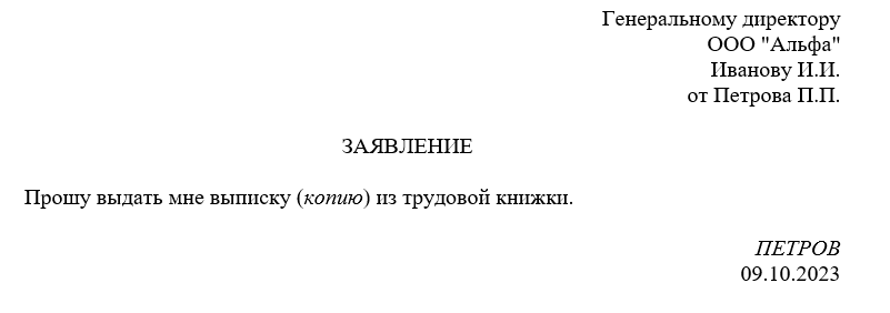 Заявление о ведении трудовой книжки. 1С Бухгалтерия 8.3