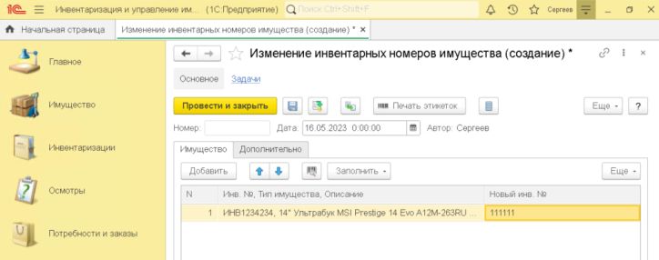 Как изменить инвентарный номер в 1С Бухгалтерия 8
