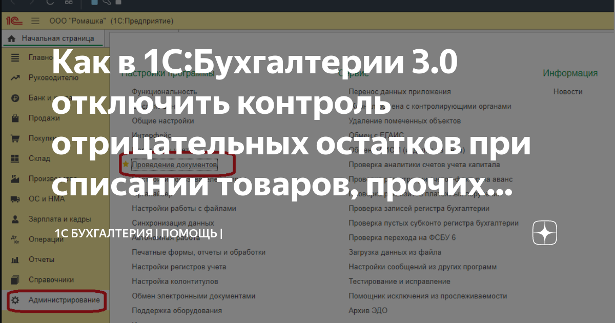 Ролик «Как отключить контроль остатков в 1С?»