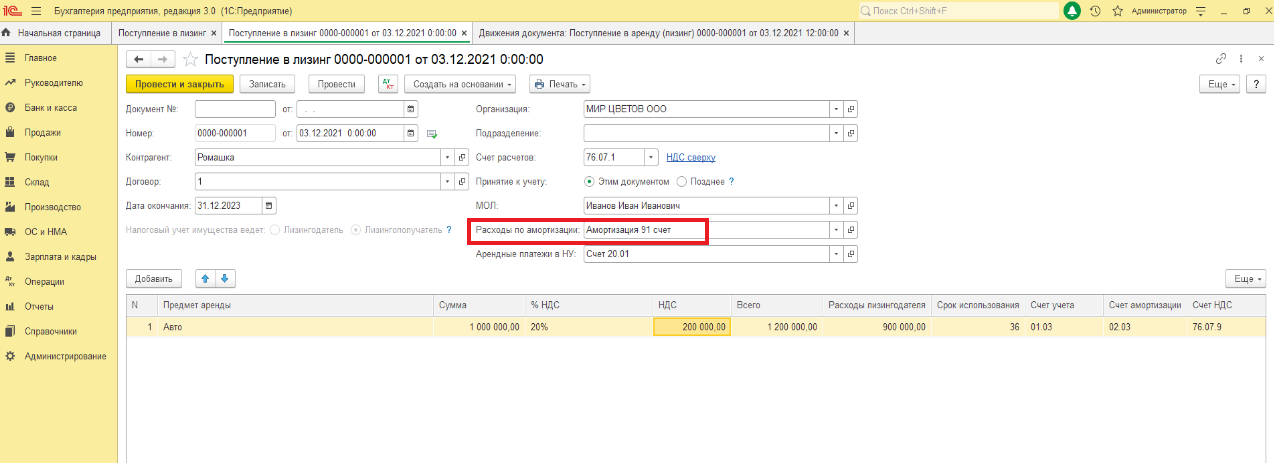 Поступление ОС в лизинг в 1С 8.3 пошаговая инструкция