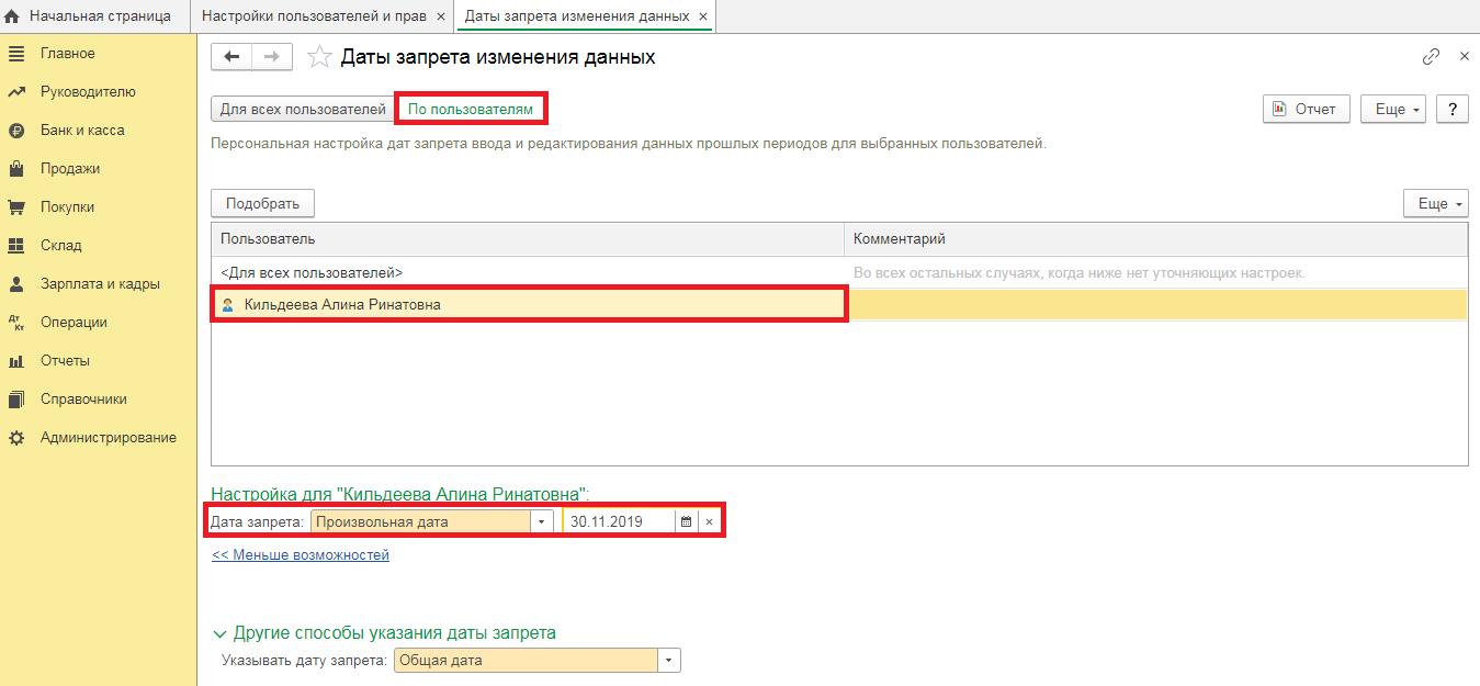 Запретить пользователям изменять документы - Дата запрета редактирования - Настройка 1С