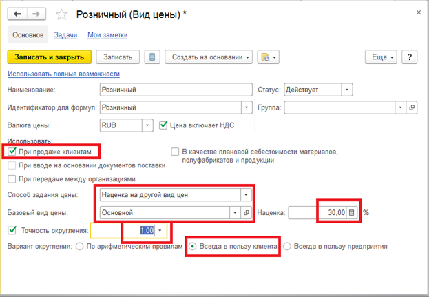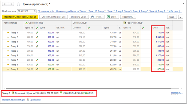 Розница установка цен номенклатуры