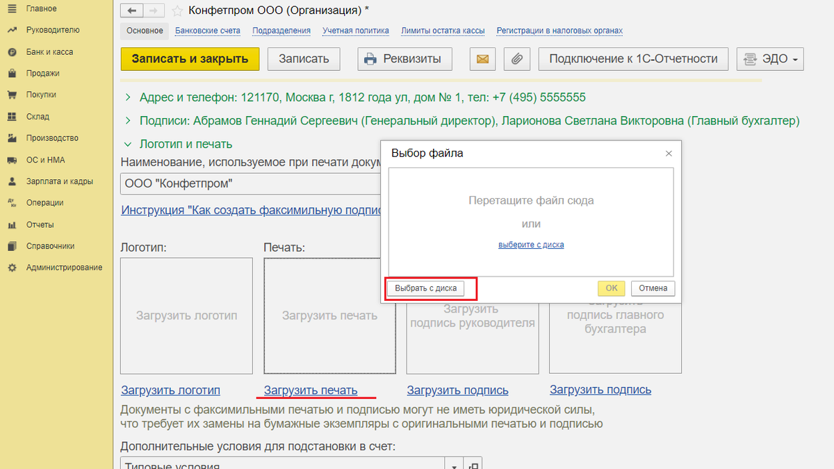 Загрузка печати и подписи директора в 1C: полезные советы и примеры