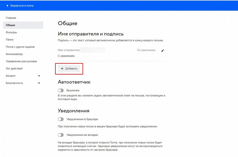 Создание автоматической подписи с уважением в почте Яндекс