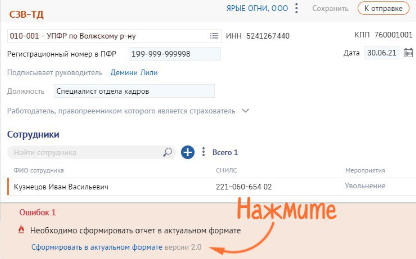 Как создать и отправить отчет СЗВ-ТД в ПФР