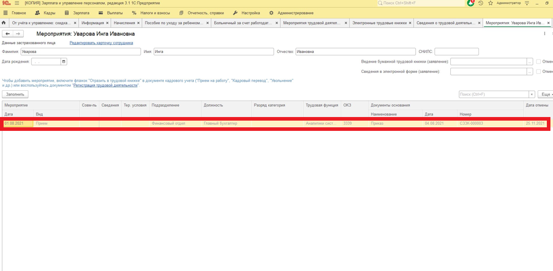 Как убрать ошибочную отмену мероприятия в СЗВ-ТД, на примере 1С:Бухгалтерия?
