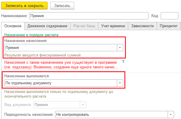 Настройка начисления «премия» в 1С Зарплата и управление персоналом