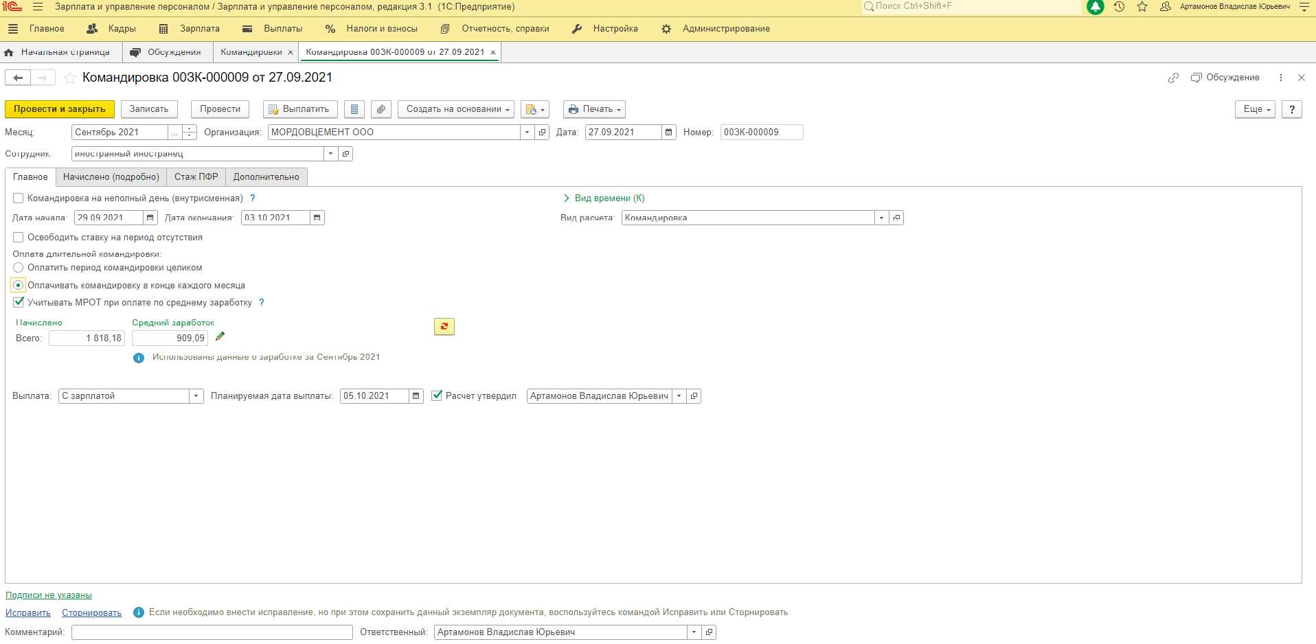 Как оформить приказ на командировку в 1С:ЗУП 8.