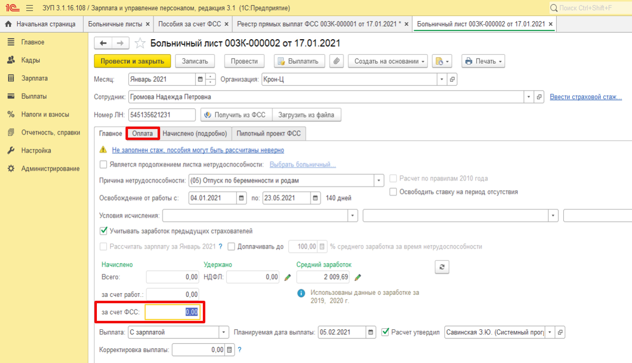 Отпуск по беременности и родам в 1С 8.3