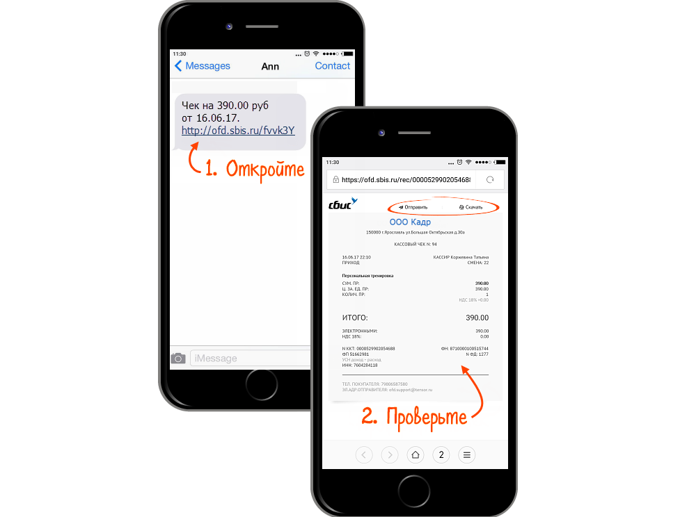 Инструкция по отправке покупателю электронного чека по СМС или E-mail из «1С:Касса»